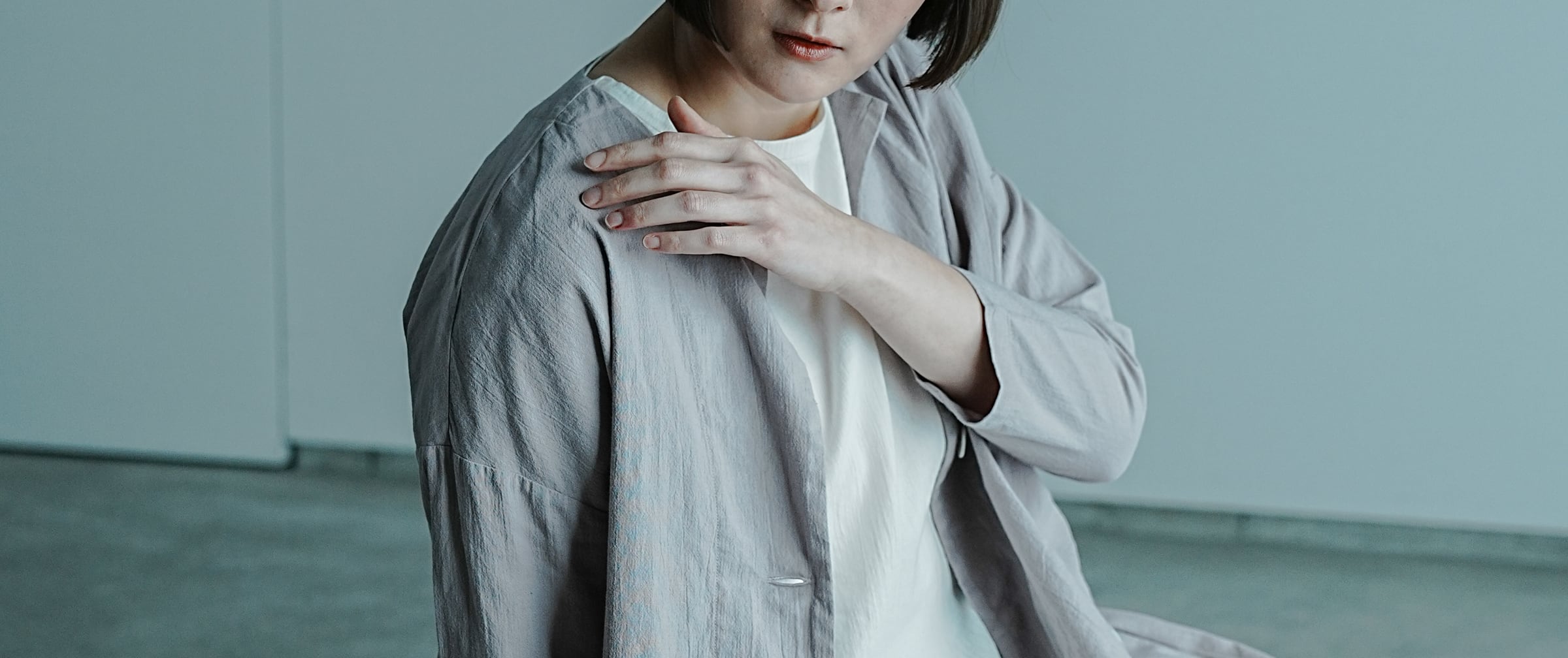 一つボタンのノーカラージャケットです。 羽織ったり、ボタンを閉じたりさまざまな着方ができる一着です。 セットアップで他のボトムスと合わせるのもおすすめです。 釦には琵琶湖で淡水真珠を作る池蝶貝を使っています。 size : one size(身幅 63.0cm、着丈 51.0cm、肩幅 65.0cm、袖丈 36.5cm)